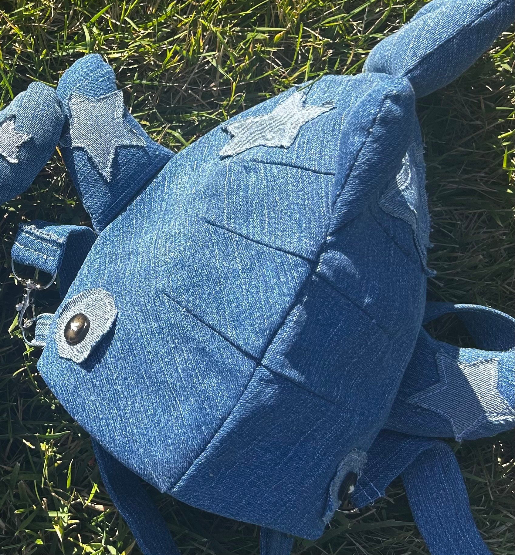 mid-dark line jean-wash with stars on each pectoral fin and each backside (with one being a star within a star) Inner jean pocket